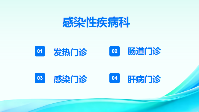 科室下设发热门诊、感染门诊、肠道门诊、肝病门诊四个亚专业,接诊范围包括: