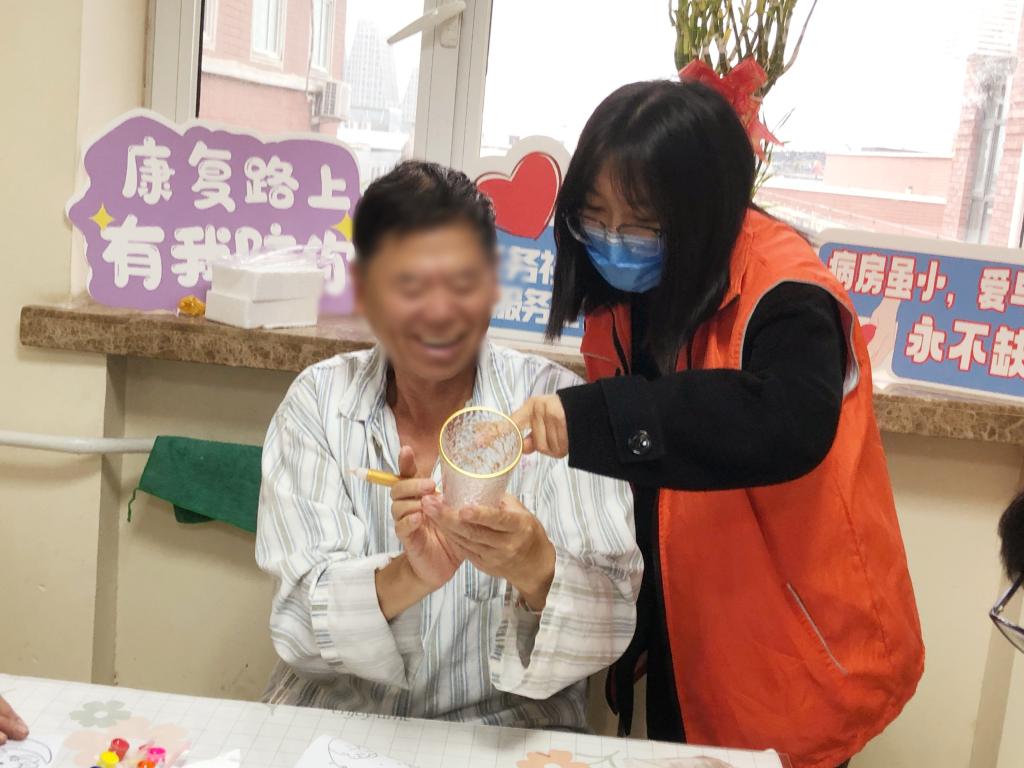 “住院这些天心里挺闷的,这个活动让我特别放松,好像都忘了生病这回事。”参与活动的闫阿姨举着画好的杯子,脸上露出久违的灿烂笑容,“你看我画的这个,带回家给小孙子用,他肯定喜欢!”