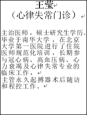 罗建平 (主任医师) 王莹 (主治医师) (心律失常门诊) |